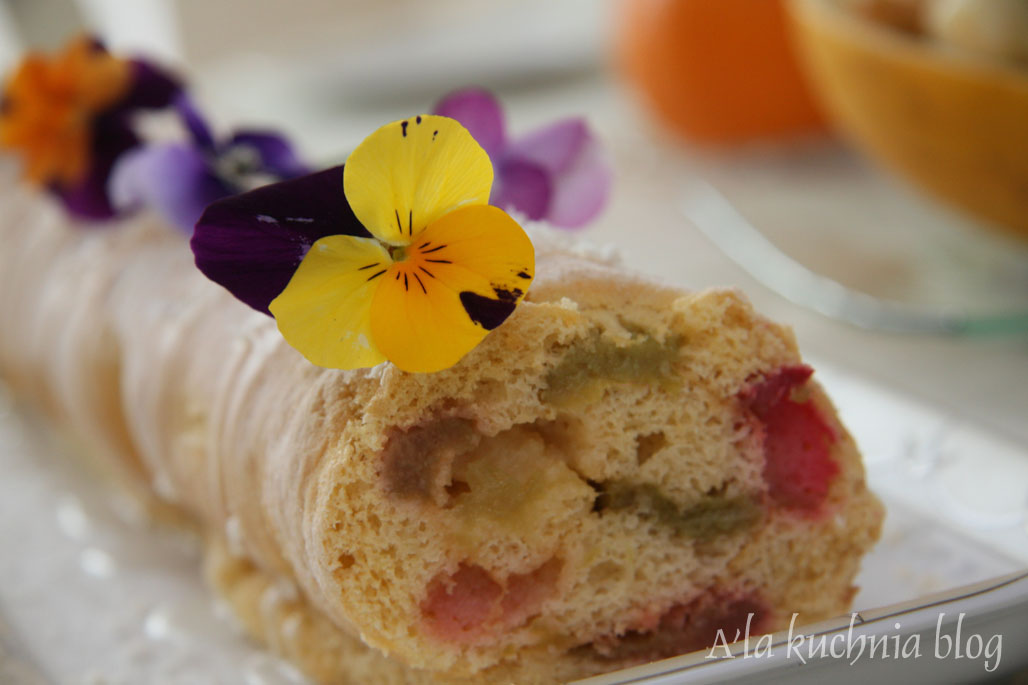 Ostatnio tyle nowości gościło na naszym stole, że długo zastanawiałam się jakim przepisem się z Wami podzielić. Padło na super dekoracyjne ciasto tzw. „Joconde cake”- u mnie w wersji rolady z owocami i bitą śmietaną i kolorowymi kwiatkami. Mało pracy, a efekt murowany.