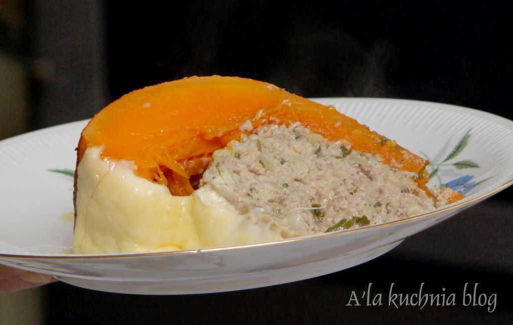 Cudowne danie z dynią w roli głównej. Mówią, że dynia to królowa warzyw – nie wiem, czy to prawda, ale jak ktoś się do niej przekona, na pewno będzie ona figurować w top 10 listy ulubionych warzyw.  Była już tarta z dynią, były rogaliki dyniowe, była też szarlotka dyniowa, było również spaghetti z dynią -  teraz czas na coś bardziej wytrawnego! Jeśli ktoś lubi zapiekane dania, to z pewnością przypadnie mu do gustu dynia faszerowana mięsem mielonym, zapiekana z serem. Przygotowanie nie jest skomplikowane, a najdłużej trwa pieczenie. Efekt końcowy – bardzo ciekawy, danie lekkie, a zarazem bardzo sycące i rozgrzewające. U nas protoplastką wykorzystania dyni do tego dania była Basia K.. Wypróbujcie!