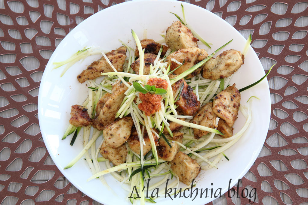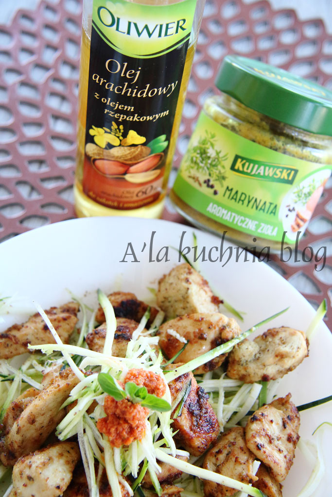 Cukinia w roli gÅ‚ównej, do tego dodatek biaÅ‚ka w postaci biaÅ‚ego miÄ™sa z czerwonym pesto….mniam