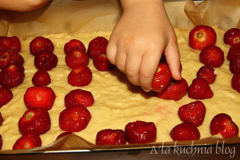 Lato w pełni, truskawkowy wysyp. Korzystamy póki można! Truskawkowe szaleństwo ogarnęło nas.... dziś mega proste, niewymagające wyrabiania ręcznego, wilgotne ciasto drożdżowe z truskawkami. Zapraszam na „Drożdżówkę Bernadtki”- gdyż to od niej dostałam ten kapitalny przepis.