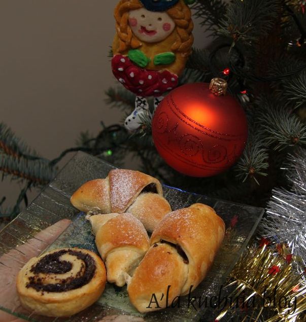 Przygotowań świątecznych ciąg dalszy... śledzie zrobione czekają na konsumpcję, zupa rybna ugotowana, kapusta z grzybami i bigos przyrządzone, więc czas na słodkości. Jako pierwsze będą drożdżowe rogaliki z makiem.
