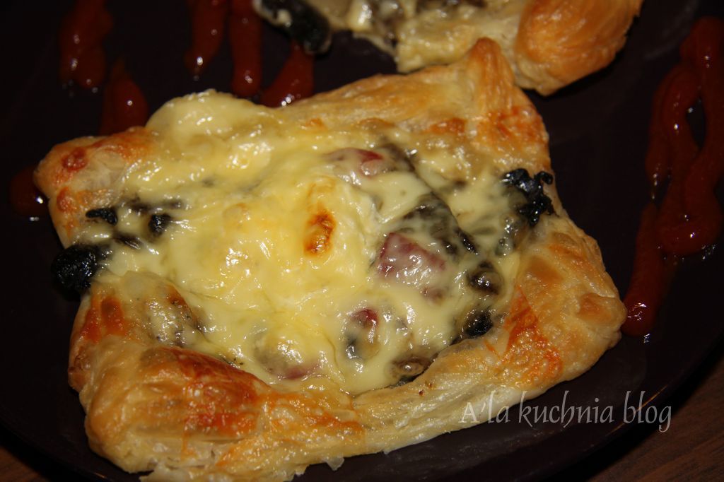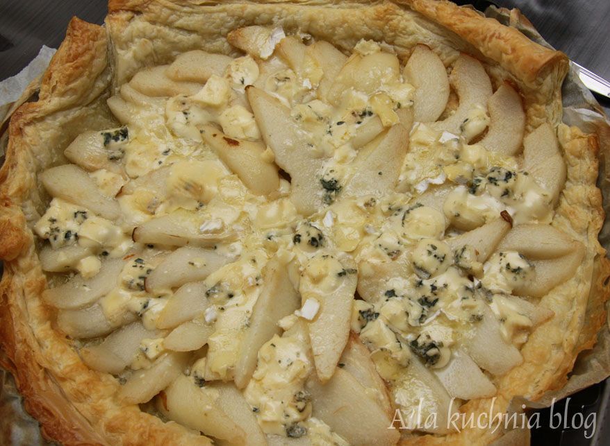 Znalazłam ten przepis w dodatku kulinarnym do gazety „Dziecko” kilka lat temu. Zaintrygowało mnie, że proponują podanie małemu dziecku dania z serem pleśniowym. Myślałam, że moje Brzdące będą grymasić, tymczasem okazało się, iż połączenie gruszki, sera typu lazur (z niebieską pleśnią) z ciastem francuskim stanowi niesamowicie smaczne i delikatne połączenie. Jest to danie nie tylko dla dzieci. Polecam go również dorosłym.