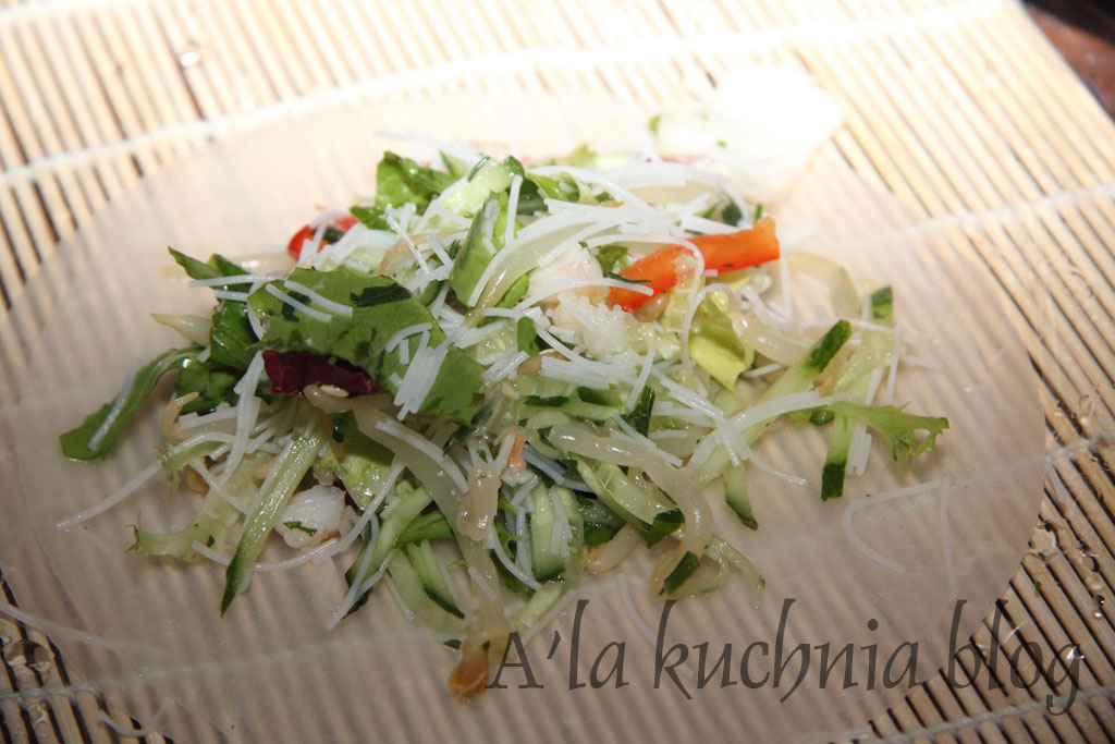 Przystawka + danie główne. Dziś rolki/roladki z papieru ryżowego z sałatką krewetkową. Za kilka dni zapraszam po przepis na kurczaka w zielonym curry coś a’la Tom Kha Kai. Smacznego!
