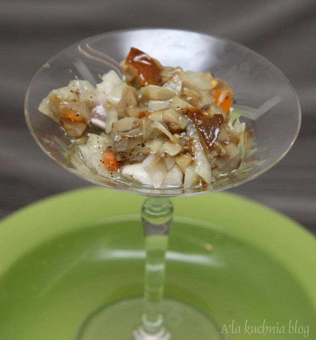 Idą Święta, Święta idą! Czas rozpocząć przygotowania kulinarne do Świąt.... w tym roku, z różnych przyczyn, ciężko mi się zebrać w sobie i zrobić chociażby listę zakupów :( No ale czego, jak czego, ale moich ulubionych śledzików z marynowanymi grzybkami zabraknąć nie może! Przepis jest bardzo prosty, a efekt bardzo smakowity.