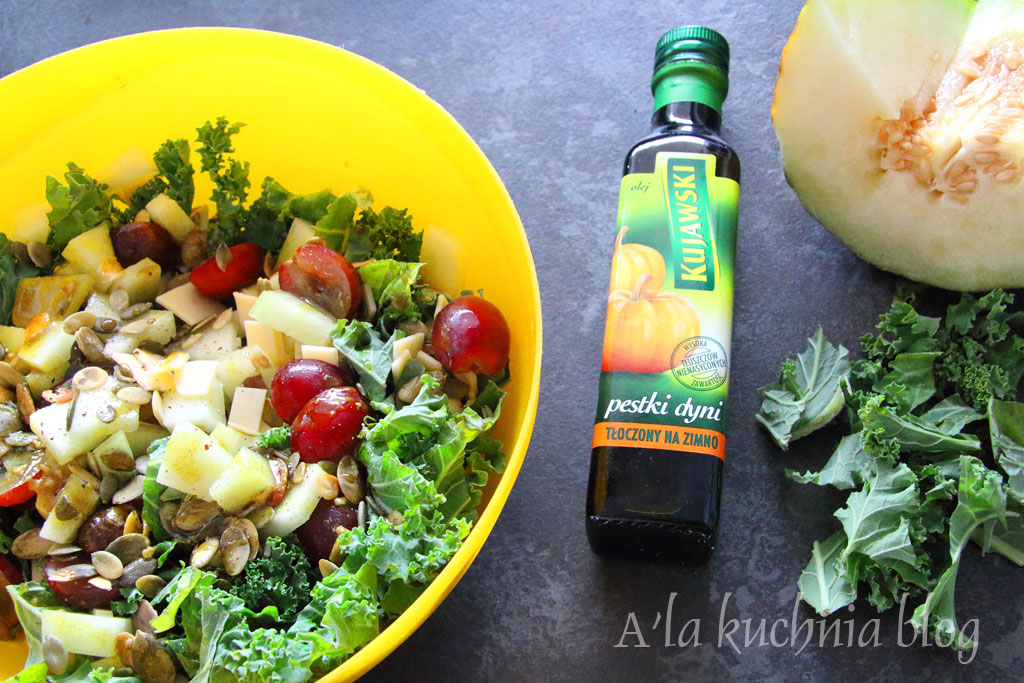 jarmuz winogrona ser dynia olej kujawski tÅ‚oczony na zimno prazone pestki saÅ‚atka grill dressing winogrona impreza szybka ser żóÅ‚ty zdrowa zielona PozostajÄ…c w tematyce grillowej.
