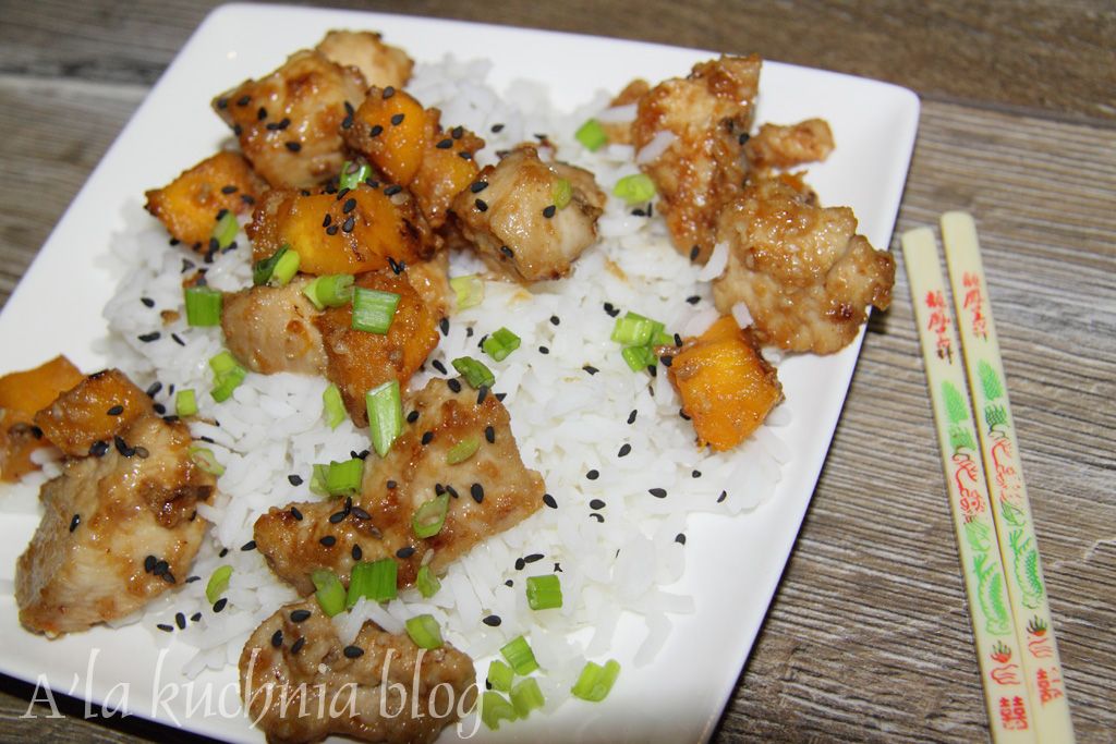 Pierwsza dynia pojawiła się w mojej kuchni w tym roku (dzięki Rodzinnym ogródkom przydomowym). Skusiłam się na potrawę, do której nie mogłam się jakoś przekonać. Kurczak w maśle orzechowy. Chciałoby się rzec, że dużo straciłam nie próbując tego zestawienia wcześniej…teraz będzie ono gościło na naszym stole często. To połączenie jest extra!