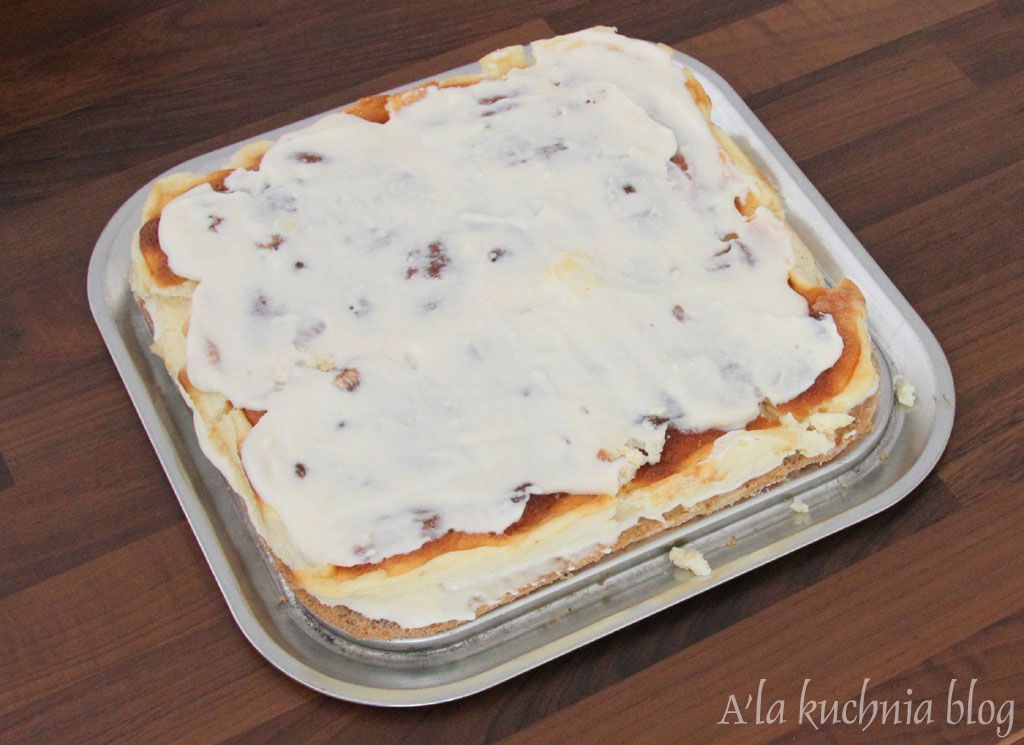 Sernik smarujemy 1/3 masy śmietanowej.